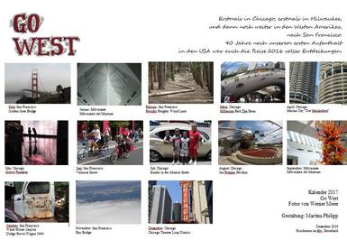 Monatskalender mit Motiven von Chicago, Milwaukee, San Francisco mit graphischem Monatskalendarium