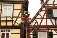 Ja, wie kommt die Hex denn dahin? Hoch über der Hofstätt thront rechtzeitig zur Kampagne 2011 eine Hex, zünftig auf Skiern. Nur der Hexenbesen kann sie dort hinaufgebracht haben, oder?