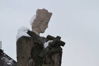 Der erste Schnee des Jahres lässt den Nepomuk an der Stadtbrücke völlig kalt!